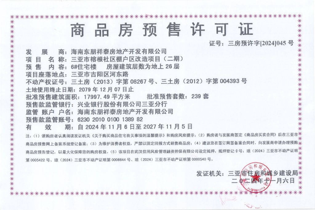 预售许可证公示(2024年45号):榕根社区棚户区改造6#住宅楼