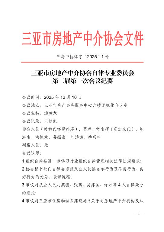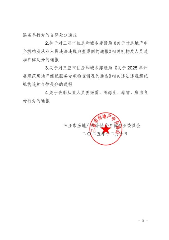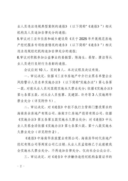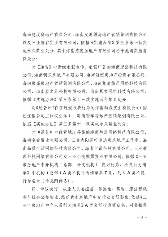 3.关于对三亚市住房和城乡建设局《关于2025年开展规范房地产经纪服务专项检查情况的通告》相关违法违规经纪机构追加自律处分的通报