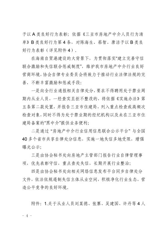 2.关于对三亚市住房和城乡建设局《关于对房地产中介机构及从业人员违法违规典型案例的通报》相关机构及人员追加自律处分的通报